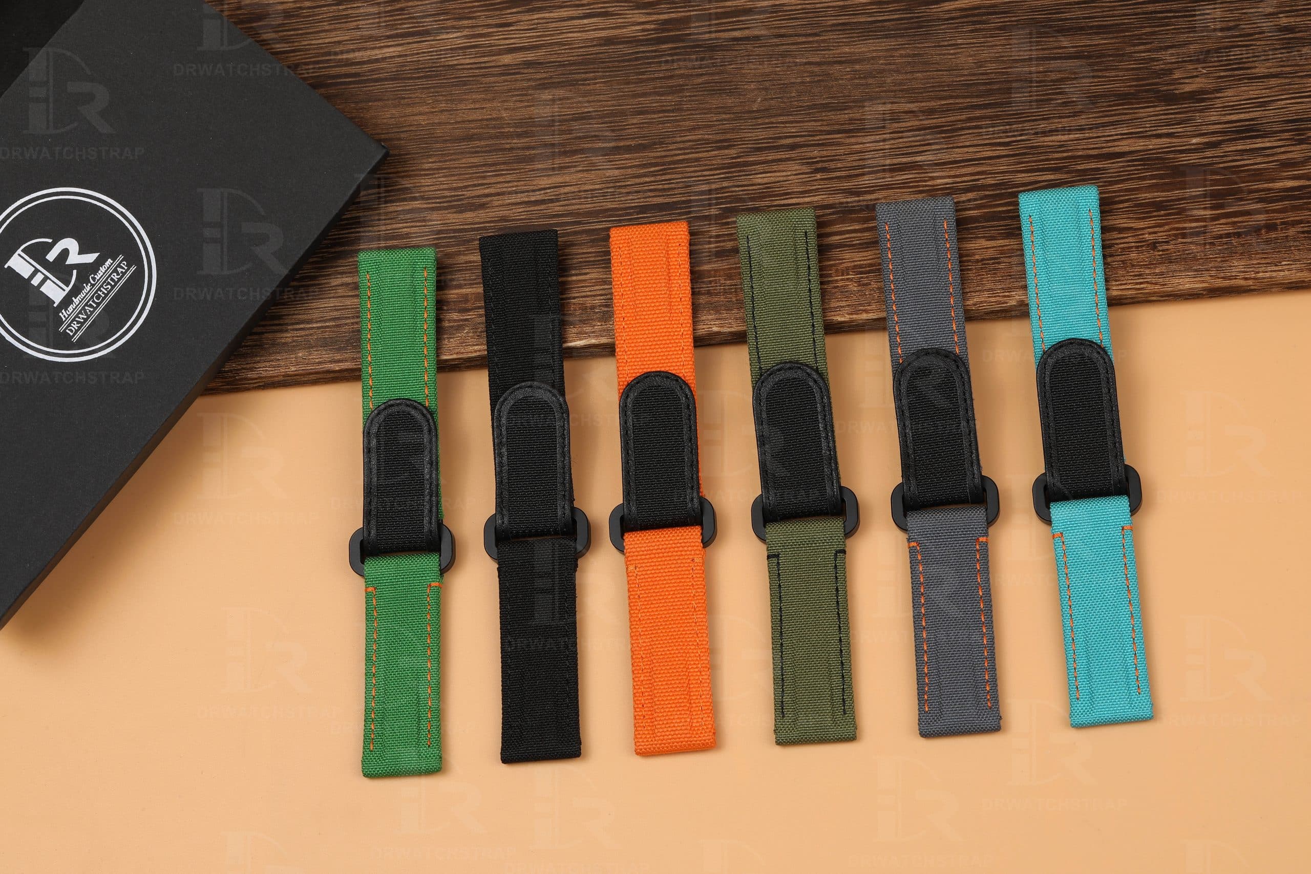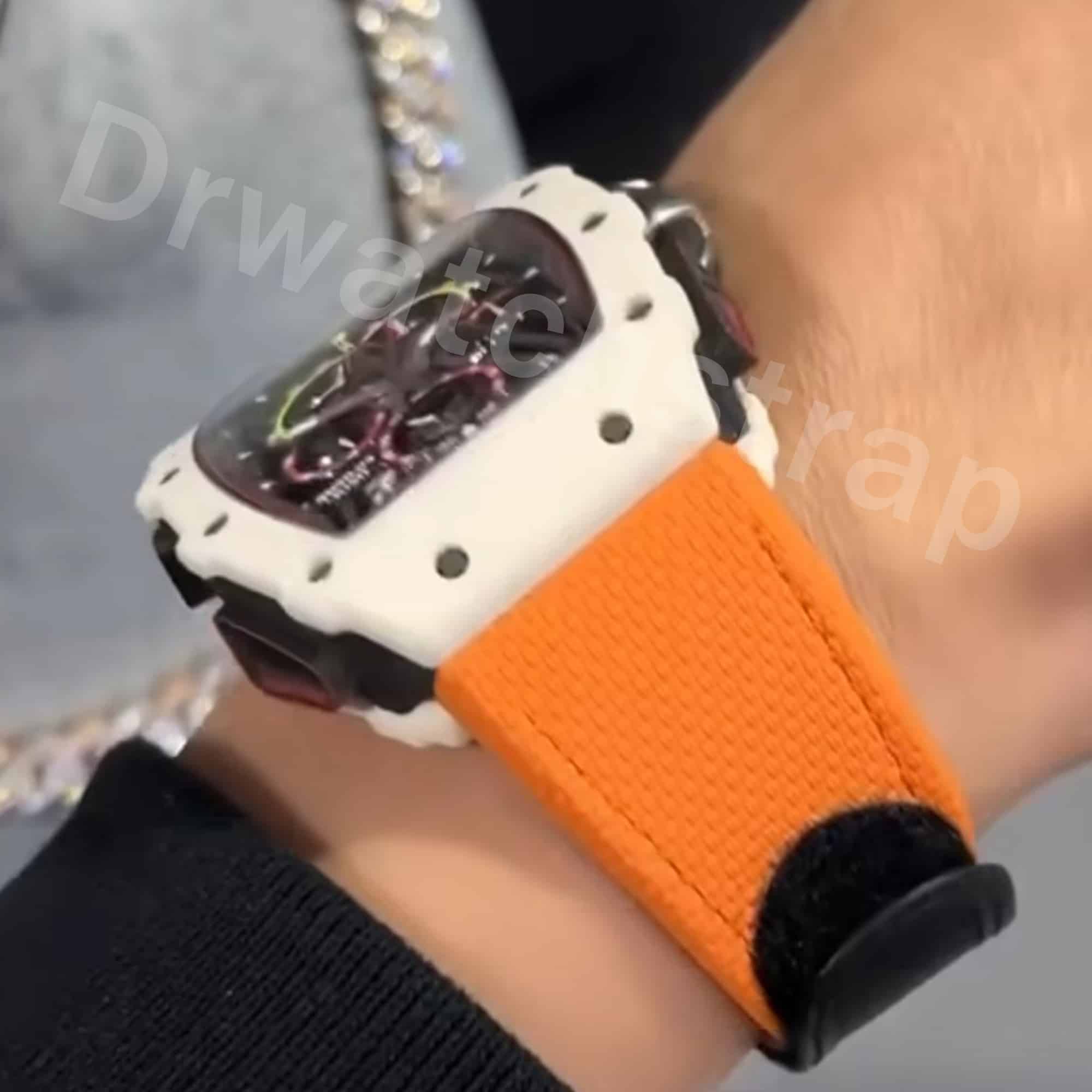 Custom velcro watch strap for Richard Mille, Rolex, Blancpain, Omega, Hublot, Franck Muller, Apple, Breitling, Patek Philippe, Cartier, Corum, Vacheron Constantin and more luxury watch velcro watch bands.